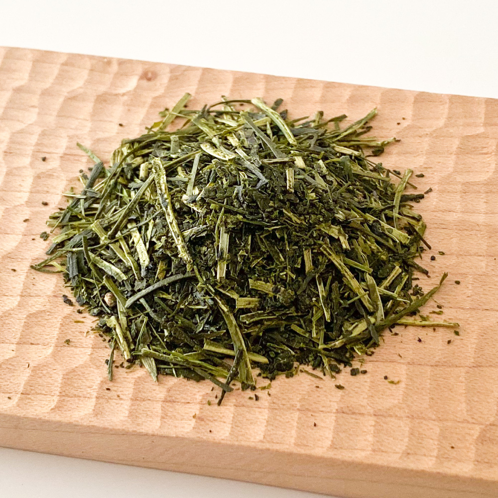 上級茶から採れる茎と2番煎茶を合組しました。煎茶のコクに茎の若々しい香りと爽やかな風味が特徴です。